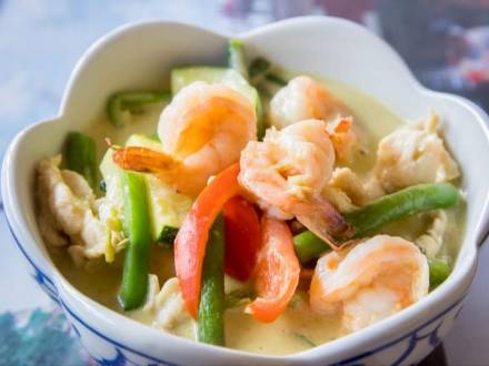 Choice of protein with red curry in coconut milk pumpkin zucchini bamboo shoot green beans and sweet basil. Great experience yummy food. Up to 4 cash back 6.